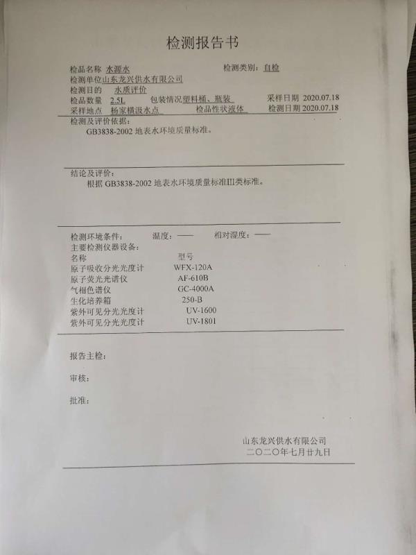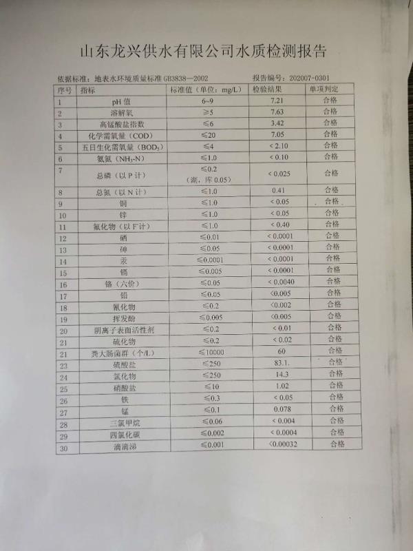 7月水源水月檢報(bào)告