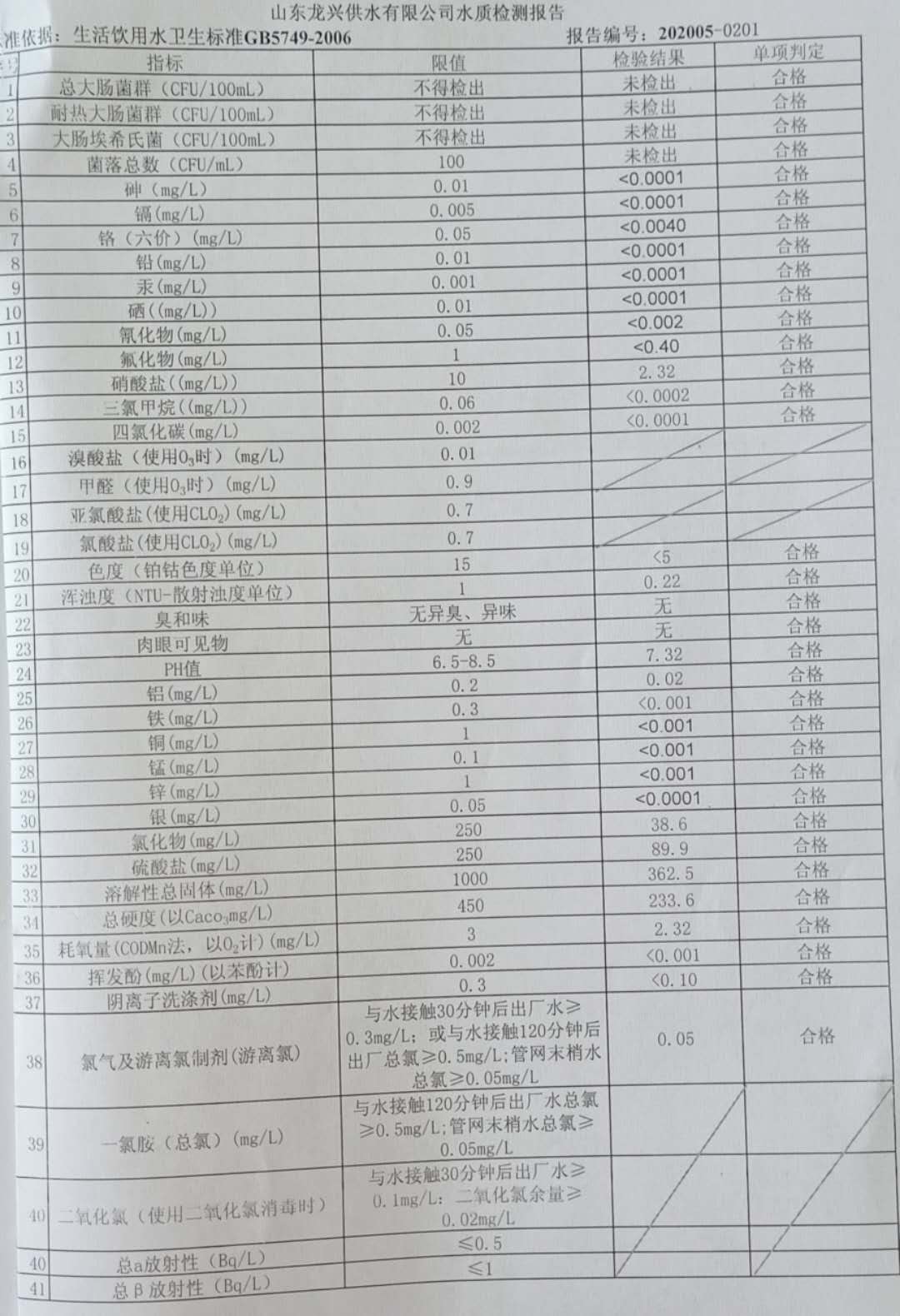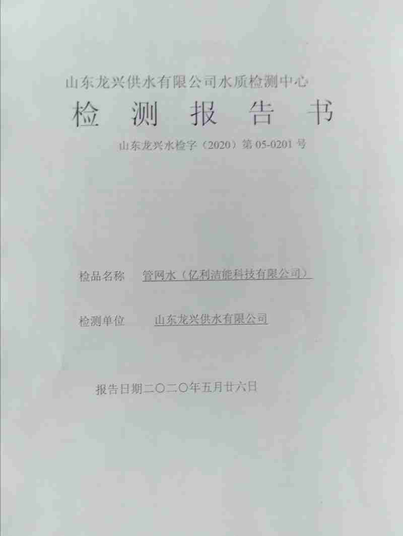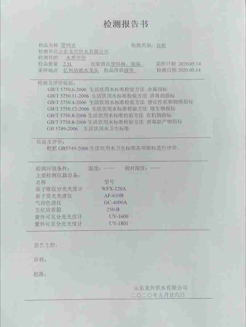 2020-5月管網(wǎng)水水質(zhì)月檢報(bào)告