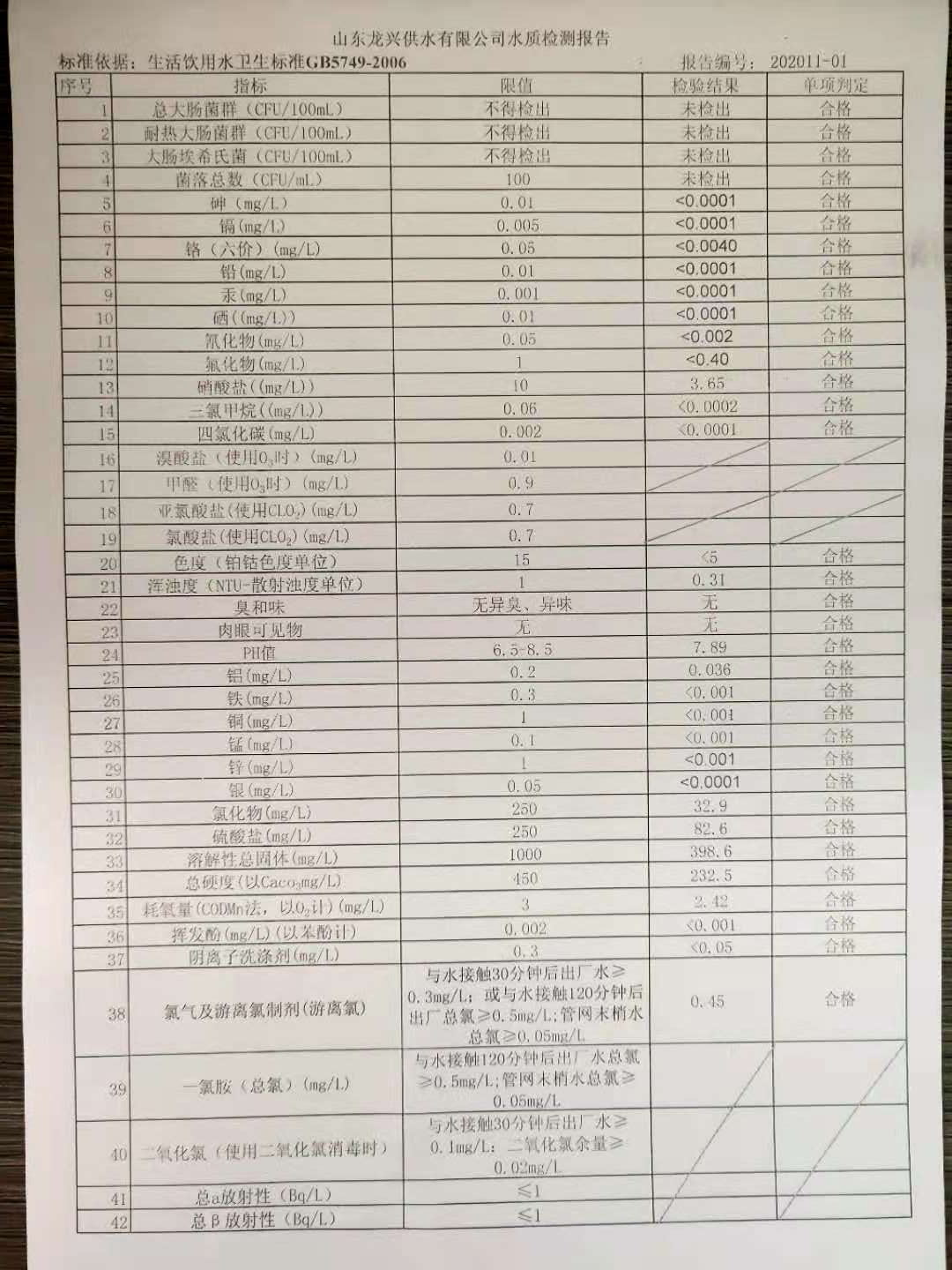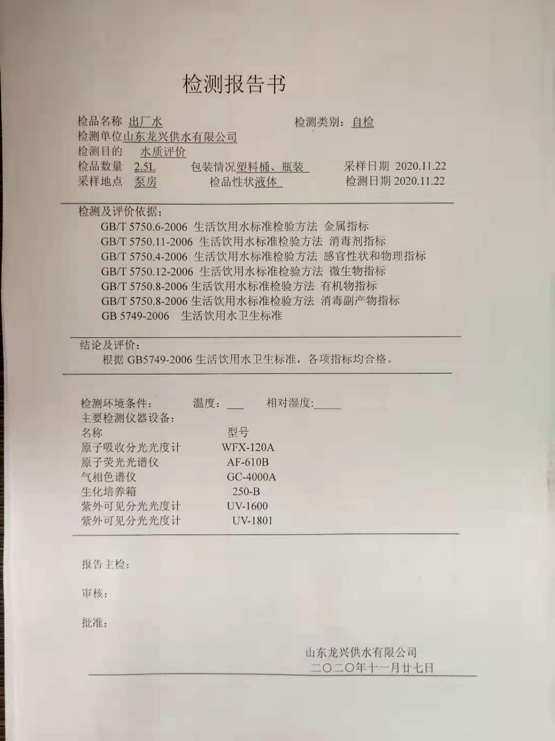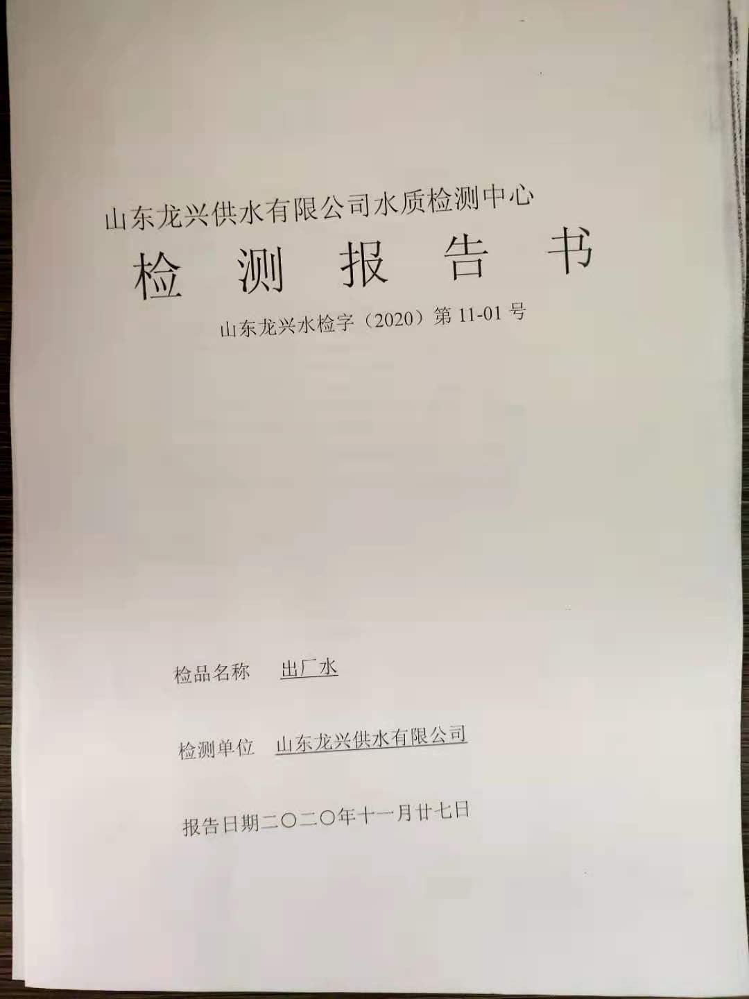2020年11月出廠水月檢報告