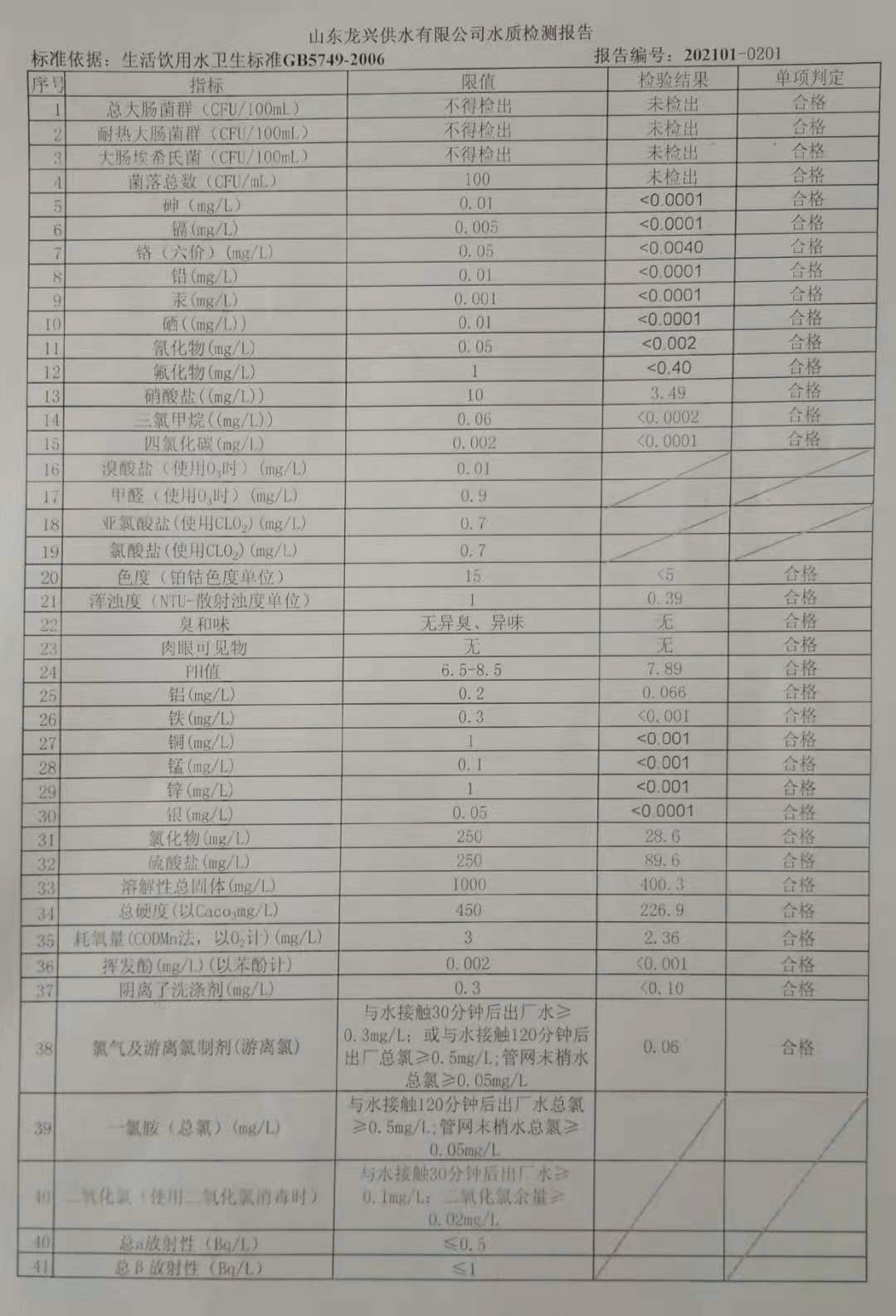 元月份管網(wǎng)水(億利潔能有限公司水龍頭)月檢報告