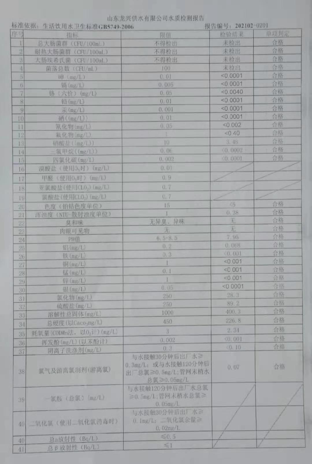 2月份管網(wǎng)水(億利潔能科技有限公司水龍頭)月檢報告